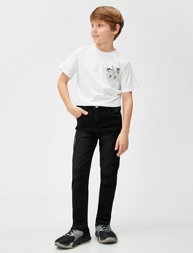 Koton Palm Printed Detail Short Sleeve T-Shirt Crew Neck Cotton, Camiseta Niños, Weiß (000),
