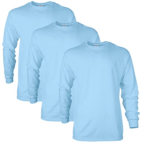 Gildan Ultra Cotton Long Sleeve T-Shirt, Style G2400, Multipack Camiseta, Azul Claro (3 Paquetes), XXXL (Pack de 3) para Hombre