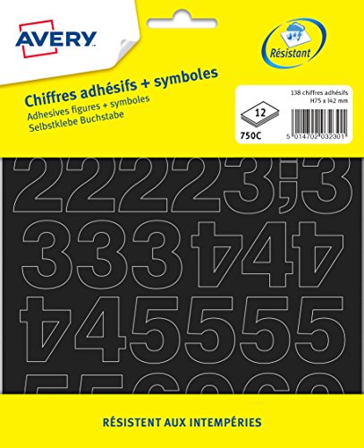 AVERY - Bolsa de 138 números adhesivos negros (+ símbolos), tamaño 75 mm Report This