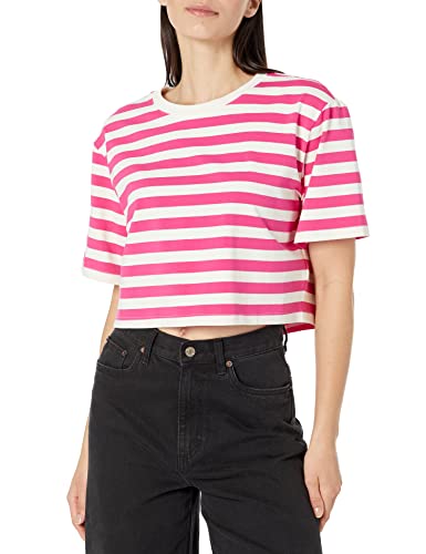 The Drop Sydney Camiseta de Manga Corta Con Cuello Redondo Y Bajo Corto para Mujer, Rosa Intenso/Blanco Whisper Pin Stripe, S Report This