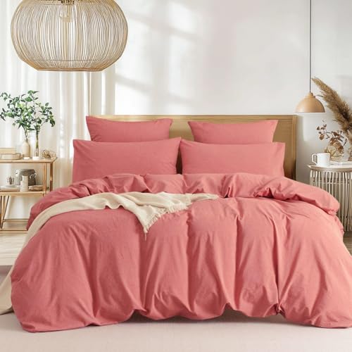 Freyamy Funda Nórdica de Algodón 240x260cm Rosa Color Liso Juego de Cama Adolescente Adulto Juego Funda Nórdica 2 Personas Juegos de Funda Reversible Nórdica Ropa de Cama