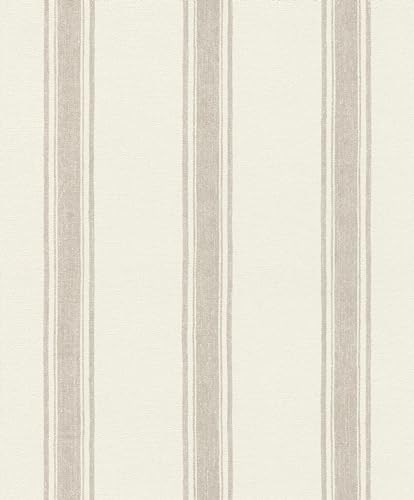 Rasch 555622 - Papel pintado no tejido con rayas en blanco y beige, papel pintado de rayas de la colección Lirico Report This