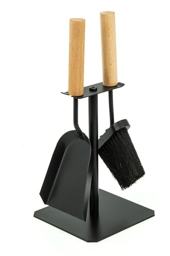 Valo Juego de Utensilios para Chimenea Trondheim (2 piezas, incluye escoba para chimenea y pala, conjunto de chimenea, soporte, negro con mangos de madera) VK000306 Report This
