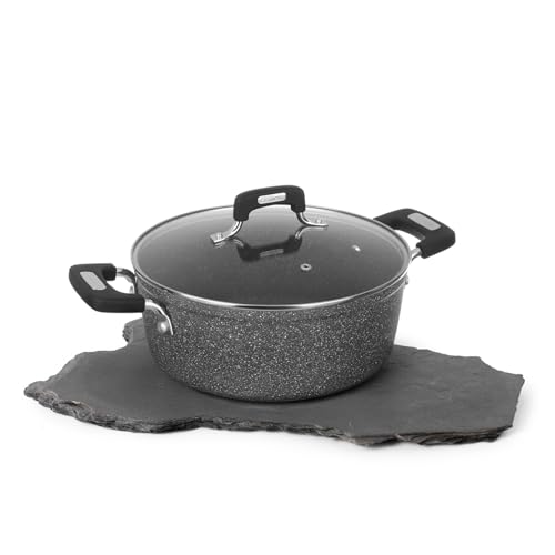 KASANOVA Olla antiadherente de 26 cm con tapa, apta para inducción y todas las cocinas New Petra Dark