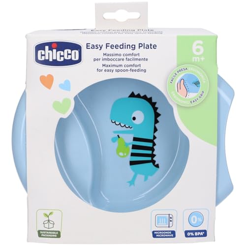Chicco Plato de Comida Papilla Fácil, plato para niños pequeños con base antideslizante, diseño ergonómico, plato de destete, 6M+, bebé, Azul celeste Report This