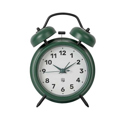 GIFTMARKET – Reloj Despertador analógico silencioso. Despertador de mesilla Verde Oscuro. Reloj Despertador de Doble Campana con luz Nocturna. Sin Tic-TAC. 11,7 cm x 16 cm Report This