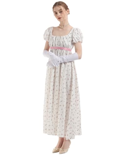 FCCAM Vestido Regency para mujer Jane Austen Largo Vintage Vestido de baile victoriano con guantes Vestido de estilo imperio, XL Report This