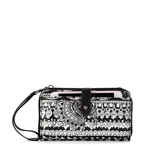 Sakroots Bolso bandolera grande para smartphone en lona revestida, bolso convertible con correa de muñeca desmontable, negro, blanco, (Black & White One World), Talla única