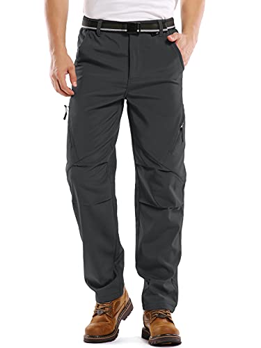 Asfixiado pantalones de senderismo impermeables para hombre, esquí de nieve pesca forro polar aislado Soft Shell pantalones de invierno al aire libre, gris, 29