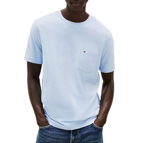Tommy Hilfiger Camisetas de manga corta Hombre Essential con bolsillo en el pecho, Azul (Breezy Blue), XXL Report This