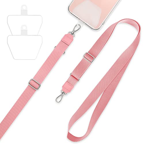 mylovetime Cadena para Teléfono Móvil, Cordón Móvil, Llavero Correa, Longitud Ajustable, con 2 Inserciones Autoadhesivas Transparentes, Compatible con Todos los Smartphones Rose