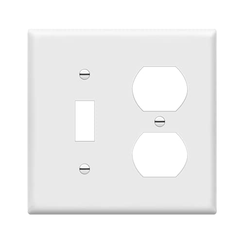 Enerlites 881121-W - Placa de interruptor de pared combinada, tamaño estándar, policarbonato irrompible, color blanco (2 bandas dúplex/palanca)