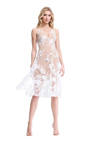 Dress The Population Women's Audrey Spaghetti Strap Midi A-Line 3D Floral Dress Report This