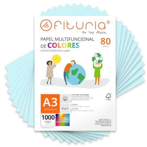 Folios de Colores, Pack 1000 Hojas A3 80gr – Papel de Colores para Manualidades, Impresora, Scrapbooking – Folios Colores – Ideal Origami, Papiroflexia, Oficina y Escuela (Azul Claro, 1000h) Report This