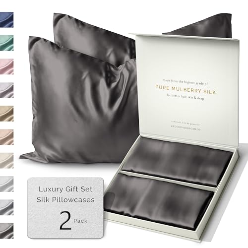 Colorado Home Co Juego de 2 Fundas de Almohada de Seda para Cabello y Piel, tamaño Queen, 100% Seda de Morera, Paquete de 2 Unidades, Esencia de carbón con Cremallera Report This