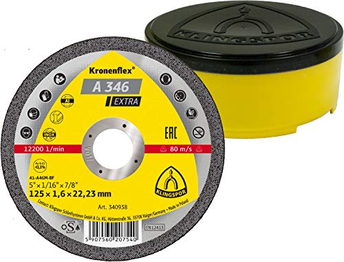 Klingspor 340938 A 346 Extra Discos de Corte Kronenflex INOX/Acero, D125 x A1.6 x P22.23 mm