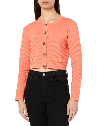 Pinko Cazadora de Cerezo a Rayas Jacquard Logo Birds Blazer, P77_salmón Fresco, XXS para Mujer