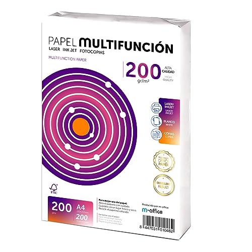 Folios A4 200gr 200 hojas, Papel Multiusos Impresora, Folios Impresoras Laser y de Inyección, Fotocopiadora, Para uso Oficina, Material Escolar, Paquete folios. m-office (200 hojas,200gr) Report This