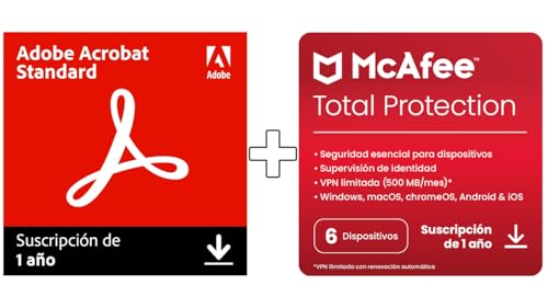Adobe Acrobat Standard & McAfee Total Protection para 6 dispositivos, 2025 |12 meses | Descarga digital