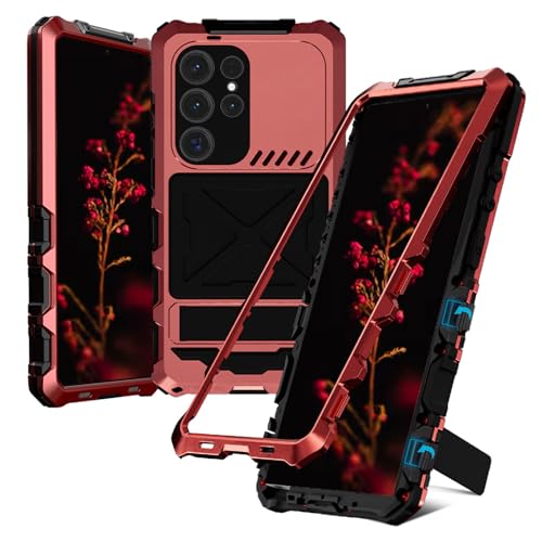 qichenlu Montaje rápido sin tornillos para Samsung Galaxy S23 Ultra, pantalla de metal con marco de cristal, lámina de cristal blindado militar, resistente a los golpes, carcasa de 360 grados, color