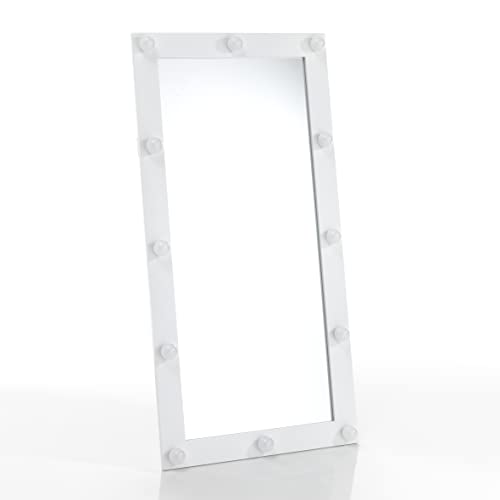 Tomasucci Wink Design - Espejo de pie/Pared Hollywood, Estructura MDF Lacado Blanco Mate, Luces LED integradas, Regulable, 60 x 120 cm