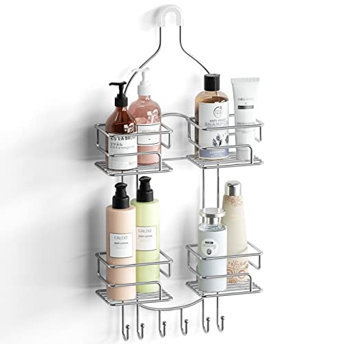 SRIWATANA Organizador de ducha para colgar sobre la cabeza, colgador de ducha de baño con ganchos para maquinillas de afeitar, cromado