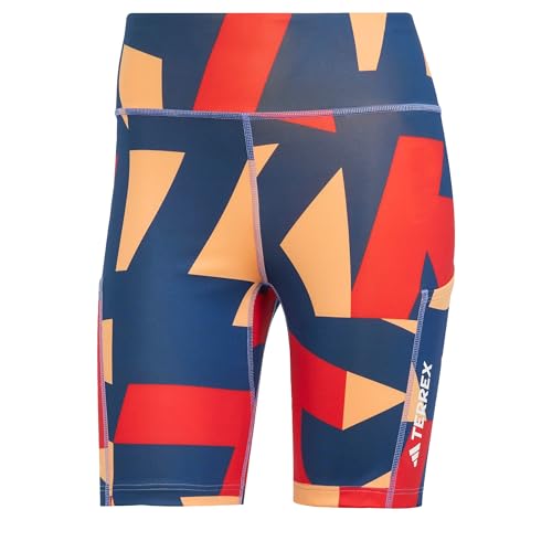 adidas Mujer Terrex Multi 8inch Printed Tight Shorts, Semi Impact Orange/Pure Ruby/Pure Ruby/Semi Cobalt Blue, XL