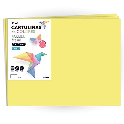 Cartulina de Colores, Cartulina Grande 50x65 cm de Colores Pastel, Cartulinas de Colores Pastel 180gr para Manualidades, Diseños Creativos y Proyectos de Arte · m-office (x250 hojas, amarillo) Report This