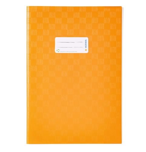 HERMA Cubierta de cuadernillo A4 naranja rafia, de polipropileno resistente y lavable, con etiqueta y estructura de rafia, protector para libros de ejercicios Report This