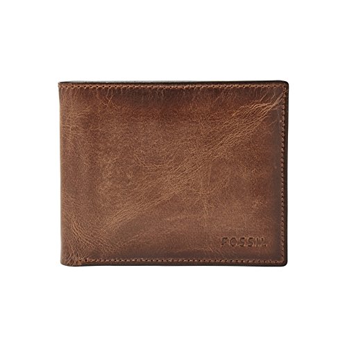 Fossil Billetera para hombre Derrick, Billetera de piel marrón 11.43 cm L x 1.9 cm A x 8.89 cm A ML3771200