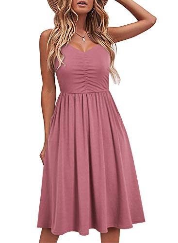 YATHON Vestidos Informales para Mujer, sin Mangas, de algodón, Vestido de Playa, línea A, con Bolsillos - Rosa - Medium Report This