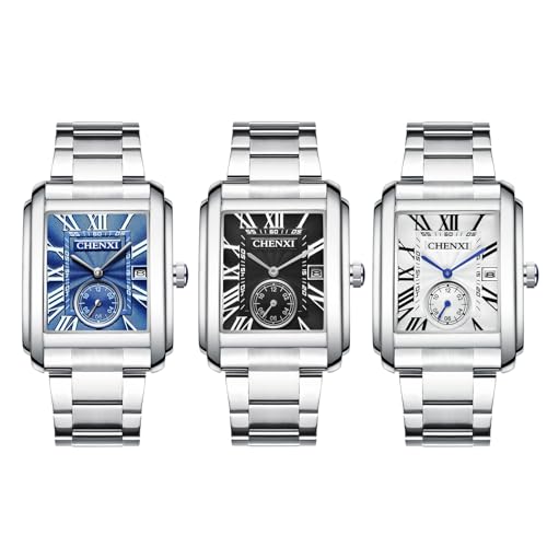 JewelryWe Reloj de pulsera para hombre de acero inoxidable, analógico, de cuarzo, con correa de acero inoxidable, diseño de imitación mecánica, 30 unidades, resistente al agua, rectangular, para