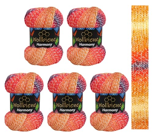 Wollbiene Harmony Batik 8060-5 ovillos de 100 g con degradado de color, 30% algodón, multicolor, para todo el año, 500 g, multicolor