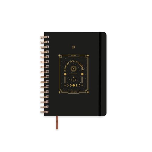 UO Agenda Escolar Equilibrio Semana Vista: Empieza en septiembre de 2025 y Acaba en Agosto de 2026, Tapa Dura, Incluye 127 Stickers, Goma elástica y Cinta de Registro, Negro