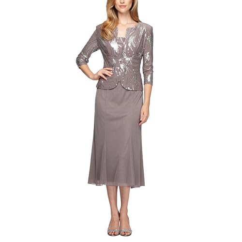 Alex Evenings Vestido de Chaqueta de Mujer con Botones Frontales, Peltre/Esmerilado, 46 Report This