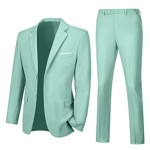 Lynerun Traje de 2 Piezas para Hombre, Ajuste Delgado, Dos Botones, Solapa con Muescas, Traje sólido, Chaqueta y Pantalones, Conjunto de Esmoquin para Baile de graduación, Verde (Mint Green), Large