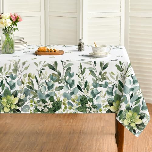 Horaldaily Mantel de Primavera y Verano de 60 x 84 Pulgadas, Mantel Floral de eucalipto para decoración de Fiesta, Picnic, Cena