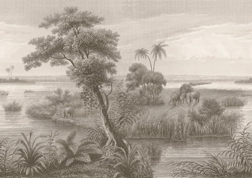 Rasch Papel pintado 556155 – Papel pintado fotográfico sobre fieltro con lago con pequeñas islas, plantas y elefantes en color marrón de la colección Lirico – 3,00 m x 4,24 m (largo x ancho) Report This