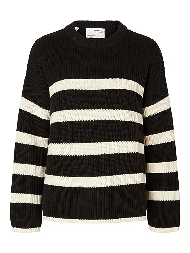 SELECTED FEMME Slfbloomie LS Knit O-Neck Noos Suéter, Negro/Rayas: Blanco Nieve, S para Mujer Report This