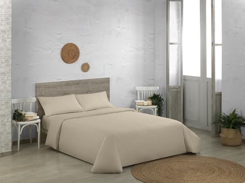 Juego de funda nórdica de algodón orgánico de 200 hilos, color topo. Cama de 90 cm (3 piezas)