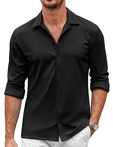 Coofandy Camisa Casual con Botones para Hombre, sin Arrugas, Camisa de Vestir de Manga Larga, Negro -, Large