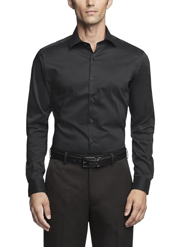 Van Heusen Men's Dress Shirt Slim Fit Ultra Wrinkle Free Flex Collar Stretch, Black, 18"-18.5" Neck 34"-35" Sleeve