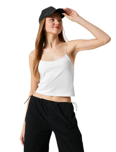 Koton Cotton Slim Fit Crew Neck Ribbed Tank Top, Camiseta de Tirantes Anchos Mujer, Ecru (010), Report This