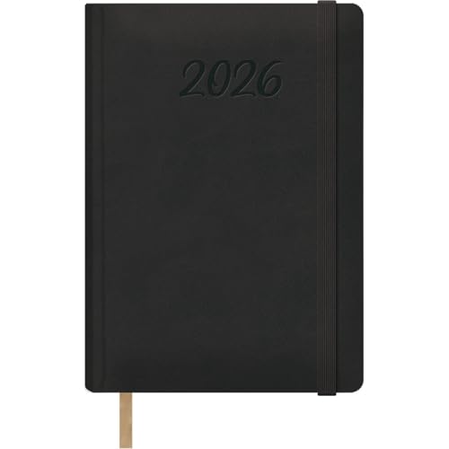 Dohe - Agenda 2026 - Día Página, A5 (15x21 cm), Tapa Dura de Polipiel, Cierre de Goma, Marcapáginas, 12 Meses Enero a Diciembre, Planificador Anual en Español - Samba Negro
