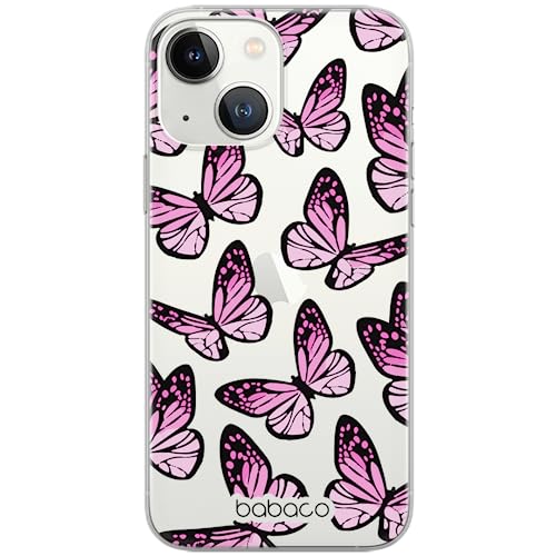 BABACO Funda para teléfono móvil de ERT Group para iPhone 13 Mini Original y con Licencia Oficial diseño Butterflies 002 Adaptada a la Forma del teléfono móvil, parcialmente Transparente