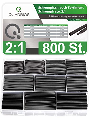 QUADRIOS GmbH Juego de 800 tubos termorretráctiles, tasa de encogimiento 2:1, tubos termorretráctiles de 1,5 mm a 12 mm, calidad industrial, sin halógenos, aptos para coches, diferentes tamaños, color