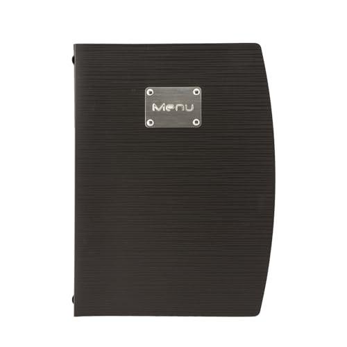 SECURIT - Portamenús Rio Line - 1 Inserto Fijo Doble Cara = 4 Páginas A4 - Posibilidad de Añadir Insertos Adicionales - Placa de Acero Serigrafiada "Menú" - Café, Bar, Restaurante - Color Negro Report This