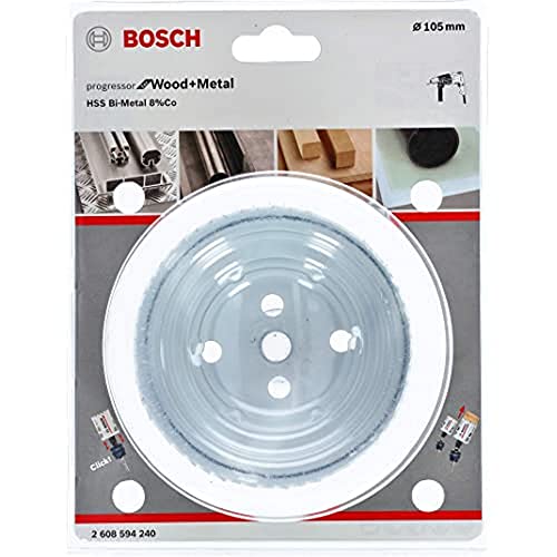 Bosch Professional Progressor for Wood and Metal Sierra de corona (para madera y metal, diámetro 105 mm, accesorios para taladro)