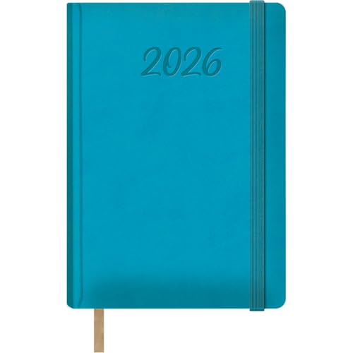Dohe - Agenda 2026 - Día Página, A5 (15x21 cm), Tapa Dura de Polipiel, Cierre de Goma, Marcapáginas, 12 Meses Enero a Diciembre, Planificador Anual en Español - Samba Turquesa
