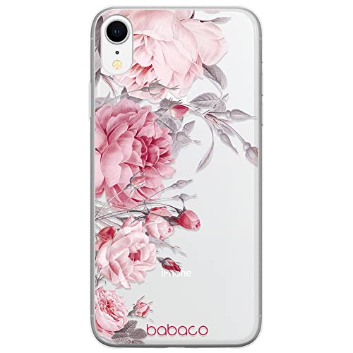 BABACO Funda para teléfono móvil de ERT Group para iPhone XR Original y con Licencia Oficial diseño Flowers 059 Perfectamente Adaptada a la Forma del teléfono móvil, parcialmente Transparente